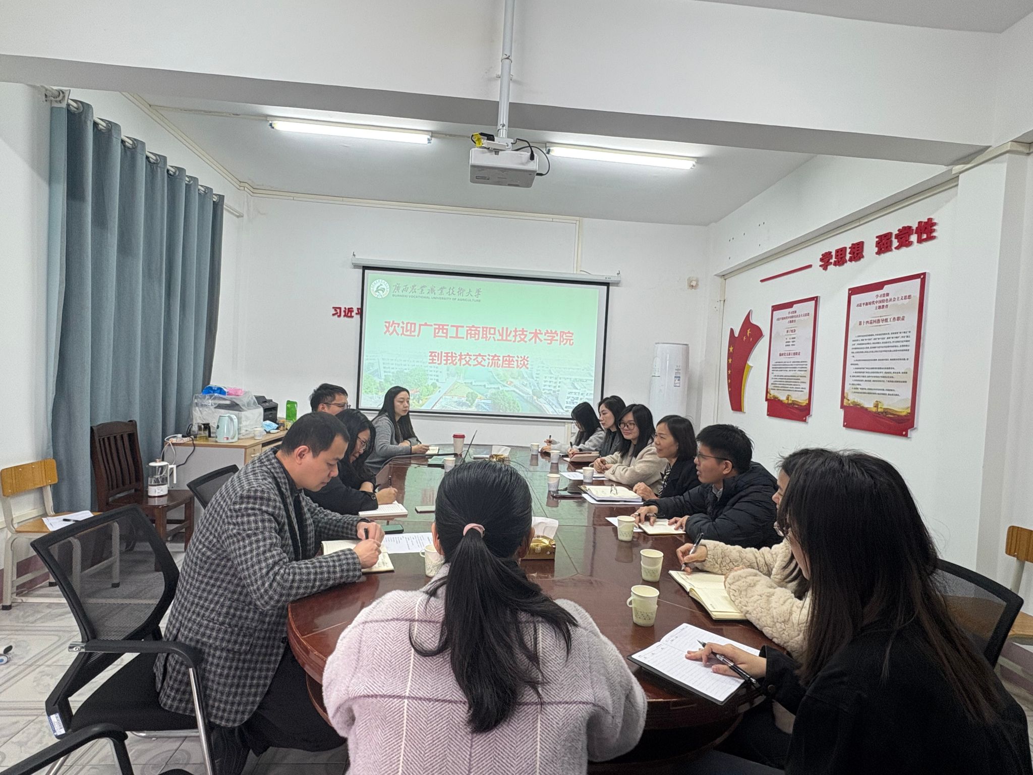 为进一步提升学校国有资产与招标采购管理工作的规范化、专业化与信息化水平,学习借鉴兄弟院校经验和做法,2026年1月15日,国有资产管理处一行8人前往广西农业职业技术大学进行业务交流学习。